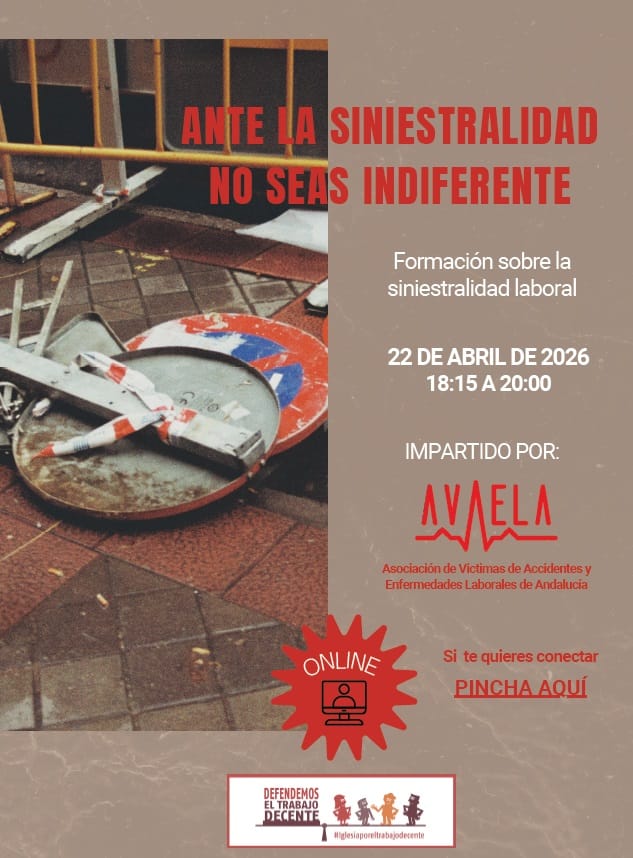 El próximo 22 de abril a las 18:15 h la iniciativa Iglesia por el Trabajo Decente organiza una jornada formativa online sobre siniestralidad laboral